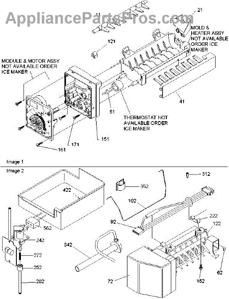 • Interfaces with the auger/crusher assembly in dispenser-equipped models