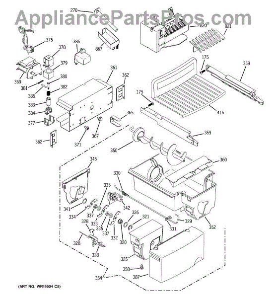 The Ice Bucket and Auger Assembly is an OEM replacement part for GE refrigerators. It consists of an ice storage bucket and an automatic ice-making auger. Together, these parts facilitate reliable ice harvesting, storage, and dispensing. Causes of a bad ice bucket and auger assembly can include damaged auger parts from jamming, worn gears preventing smooth rotation, or cracked ice storage infrastructure inhibiting ice retention and dispensing accuracy. Symptoms of a bad ice bucket and auger assembly include: