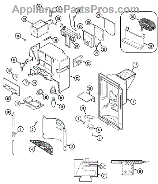This factory screw secures appliance components to their mounting points. Replace missing, worn, or stripped hardware to restore a tight fit, proper alignment, and quieter operation across the affected assembly.