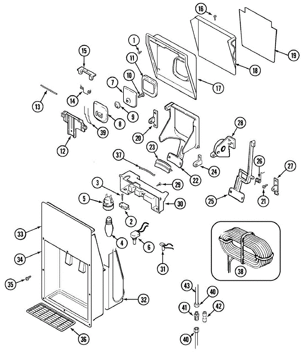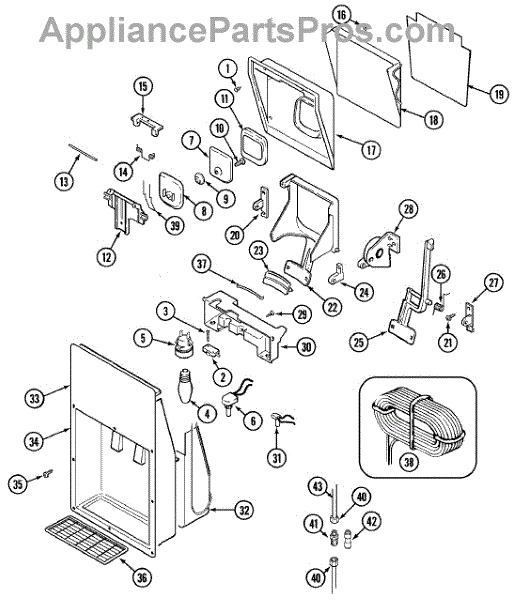 Fix water dispenser not working or ice maker stopping. This thick water tube routes water between components to prevent kinks and leaks. DIY repair.