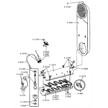 This terminal insulator assembly isolates and supports an electrical connection where it passes through the appliance chassis. Replacing a cracked or heat-damaged insulator helps prevent shorts and restores a safe, reliable connection.