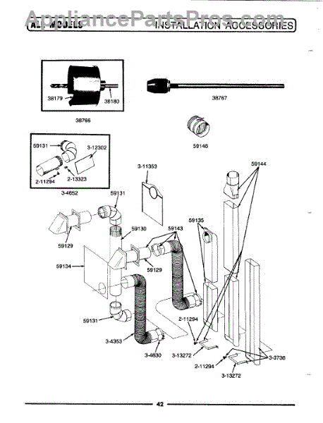 Venting pipe for dryer exhaust system. Connects dryer to external vent. Replace if cracked, damaged, or deteriorated to maintain proper airflow.