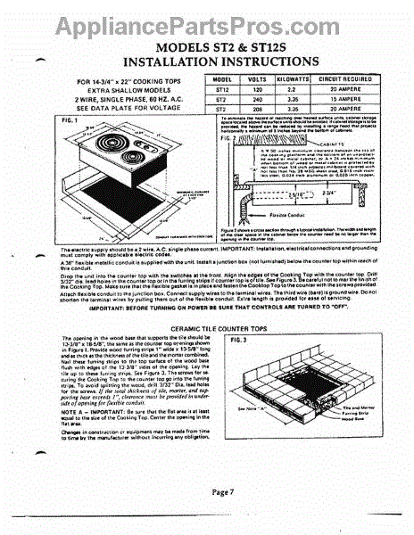 Parts for Thermador ST12S: 07 - Installation Instructions Parts