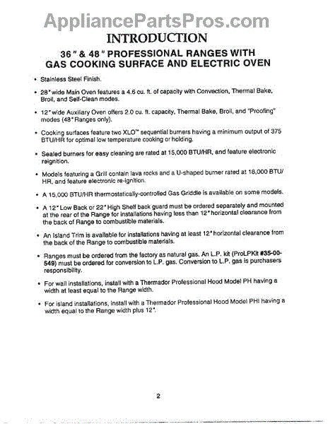 Parts for Thermador PRDS364GL: 07 - Introduction Parts