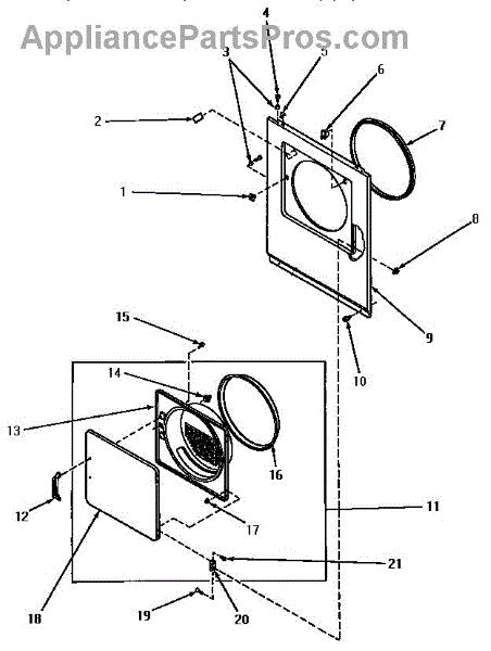 The Door Catch Kit is an OEM part for Whirlpool dryers. It includes the door catch and the necessary mounting hardware to secure it in place. This kit ensures the dryer door remains securely closed during operation, preventing heat loss and ensuring the appliance functions efficiently.
