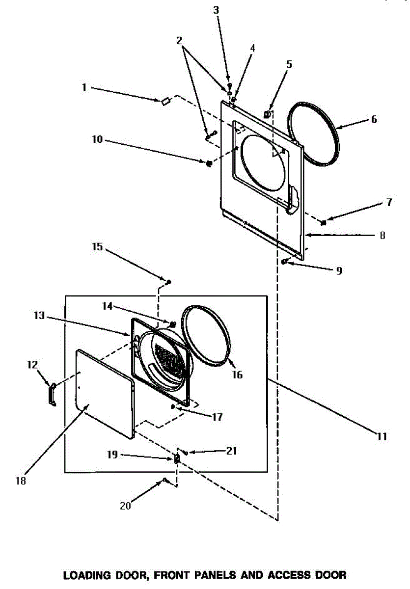 Parts for Amana NE2113: 07 - Loading Door, Front Panels & Access Door Parts