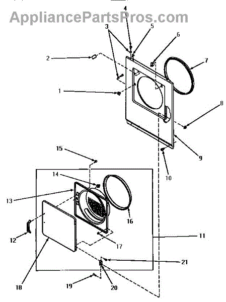 The Door Catch Kit is an OEM part for Whirlpool dryers. It includes the door catch and the necessary mounting hardware to secure it in place. This kit ensures the dryer door remains securely closed during operation, preventing heat loss and ensuring the appliance functions efficiently.