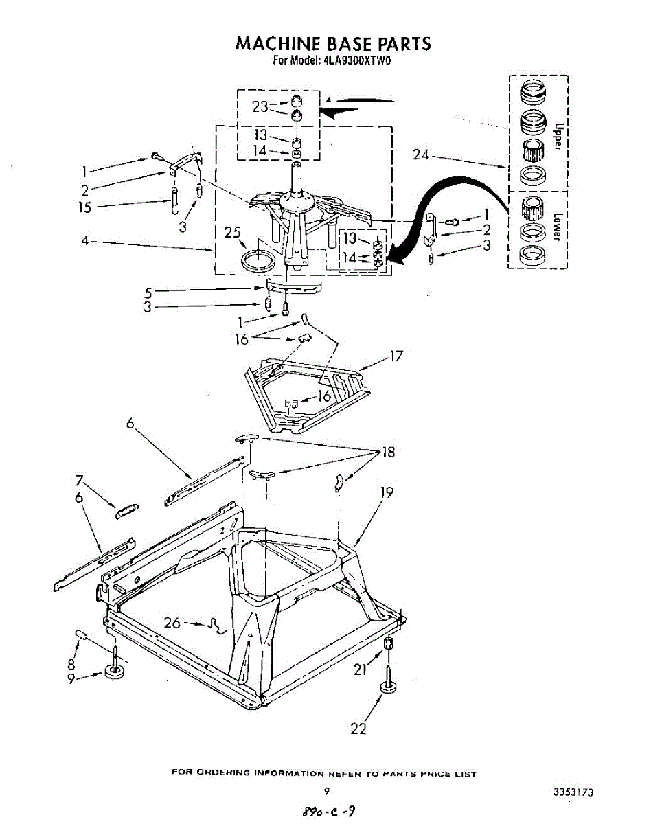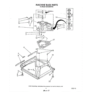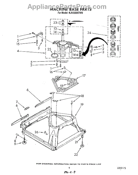 Used for direct drive washing machines. Complete assembly includes 2 level mechanism links, 1 level mechanism spring, 1 knurled pin, 2 rear feet, 1 pad plate, 1 suspension plate, 1 base pad, and 1 suspension spring retainer.