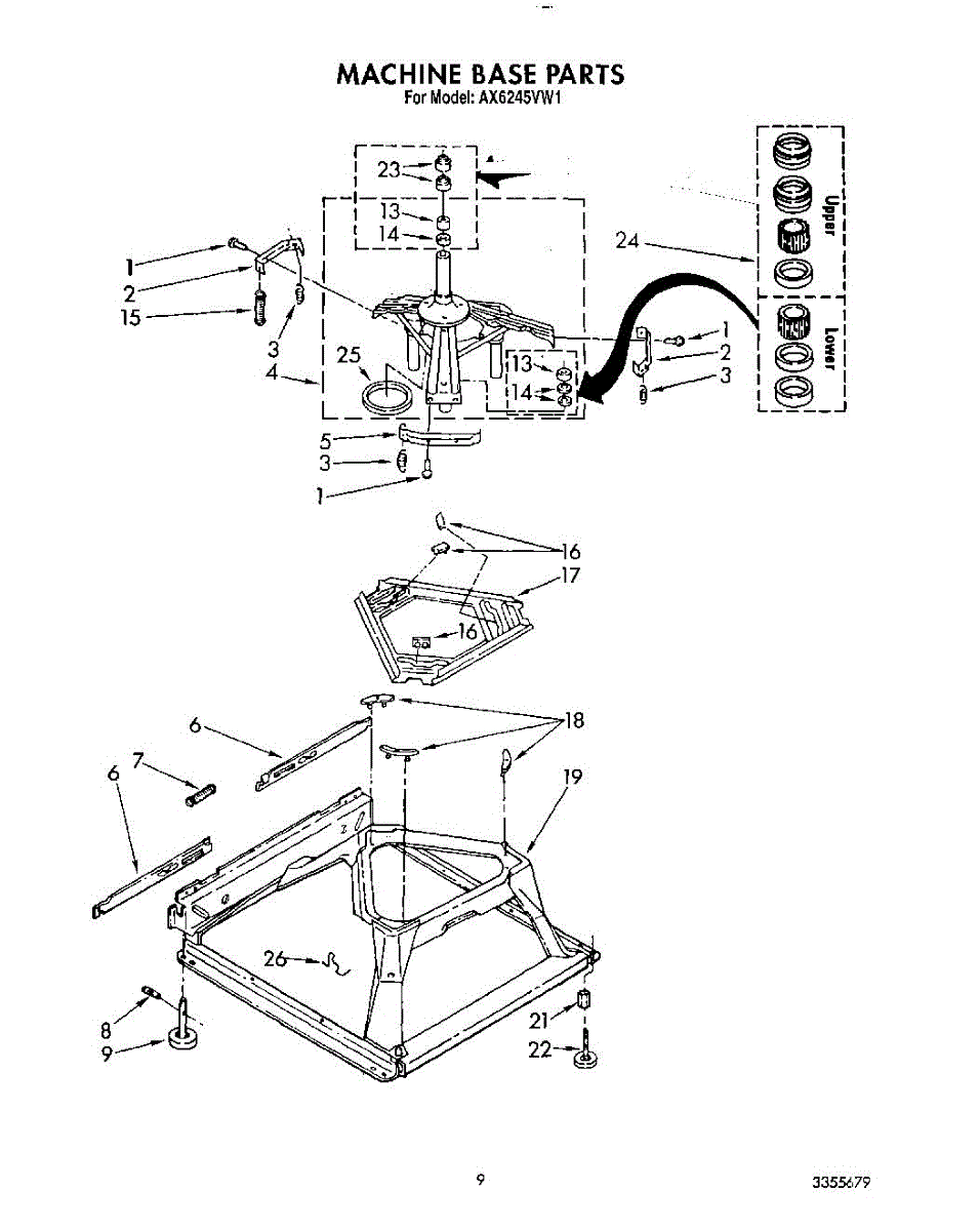 Supports the spin basket on the center post for smooth, quiet rotation. Replace if your washer is noisy, vibrating excessively, or has poor spin performance.