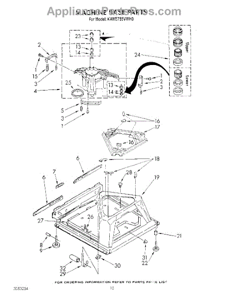 Used for direct drive washing machines. Complete assembly includes 2 level mechanism links, 1 level mechanism spring, 1 knurled pin, 2 rear feet, 1 pad plate, 1 suspension plate, 1 base pad, and 1 suspension spring retainer.