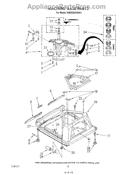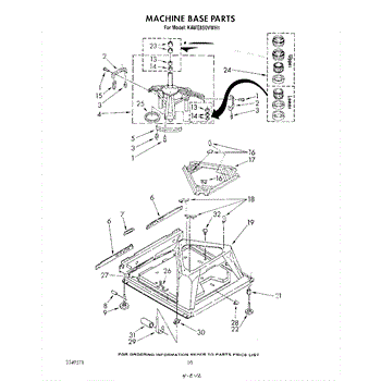Used for direct drive washing machines. Complete assembly includes 2 level mechanism links, 1 level mechanism spring, 1 knurled pin, 2 rear feet, 1 pad plate, 1 suspension plate, 1 base pad, and 1 suspension spring retainer.