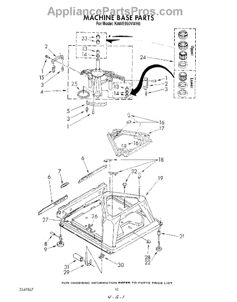 Used for direct drive washing machines. Complete assembly includes 2 level mechanism links, 1 level mechanism spring, 1 knurled pin, 2 rear feet, 1 pad plate, 1 suspension plate, 1 base pad, and 1 suspension spring retainer.