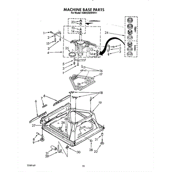 Used for direct drive washing machines. Complete assembly includes 2 level mechanism links, 1 level mechanism spring, 1 knurled pin, 2 rear feet, 1 pad plate, 1 suspension plate, 1 base pad, and 1 suspension spring retainer.