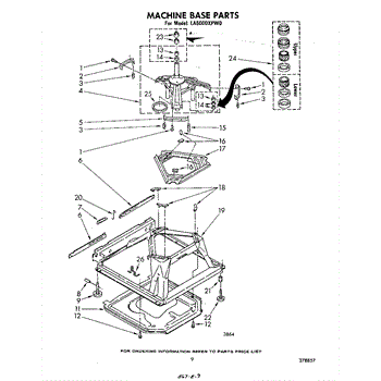 Used for direct drive washing machines. Complete assembly includes 2 level mechanism links, 1 level mechanism spring, 1 knurled pin, 2 rear feet, 1 pad plate, 1 suspension plate, 1 base pad, and 1 suspension spring retainer.