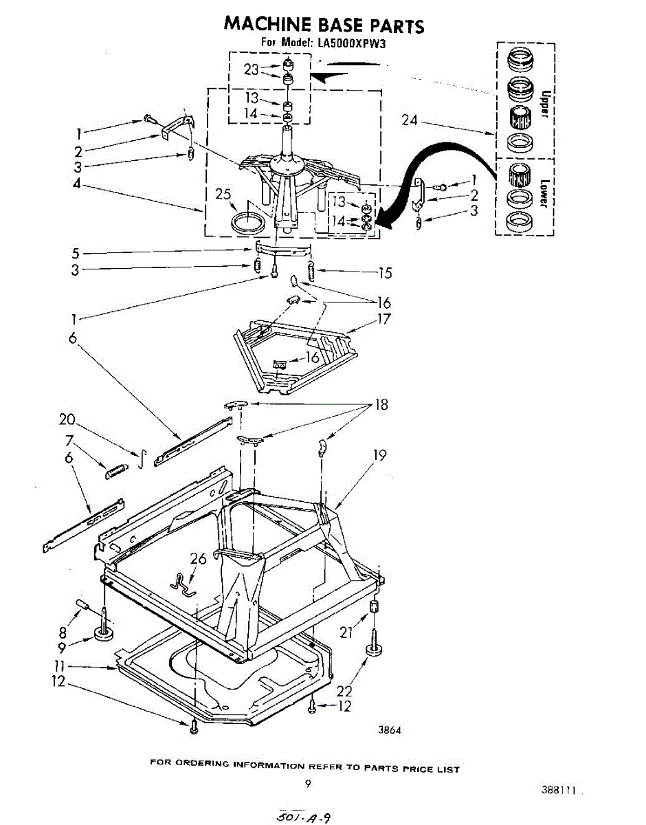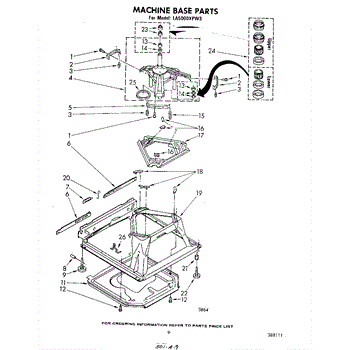 Used for direct drive washing machines. Complete assembly includes 2 level mechanism links, 1 level mechanism spring, 1 knurled pin, 2 rear feet, 1 pad plate, 1 suspension plate, 1 base pad, and 1 suspension spring retainer.