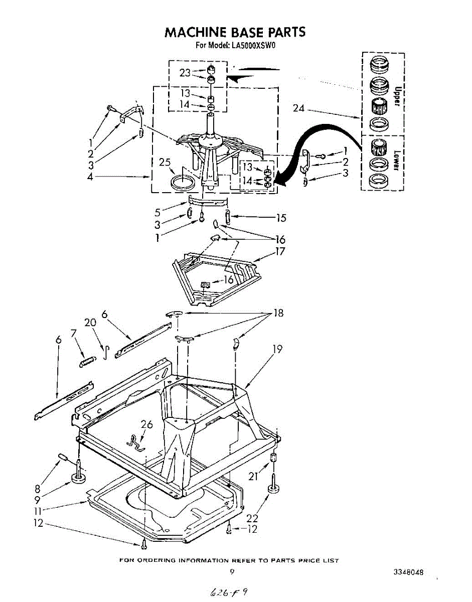 Used for direct drive washing machines. Complete assembly includes 2 level mechanism links, 1 level mechanism spring, 1 knurled pin, 2 rear feet, 1 pad plate, 1 suspension plate, 1 base pad, and 1 suspension spring retainer.