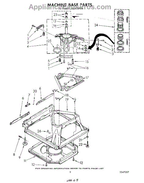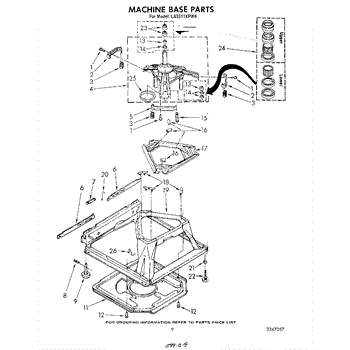 Used for direct drive washing machines. Complete assembly includes 2 level mechanism links, 1 level mechanism spring, 1 knurled pin, 2 rear feet, 1 pad plate, 1 suspension plate, 1 base pad, and 1 suspension spring retainer.