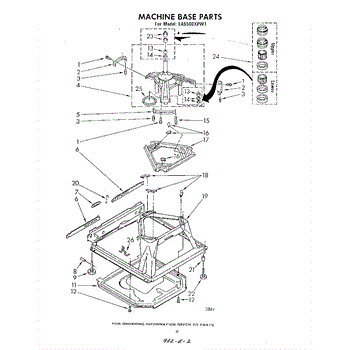 Used for direct drive washing machines. Complete assembly includes 2 level mechanism links, 1 level mechanism spring, 1 knurled pin, 2 rear feet, 1 pad plate, 1 suspension plate, 1 base pad, and 1 suspension spring retainer.