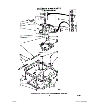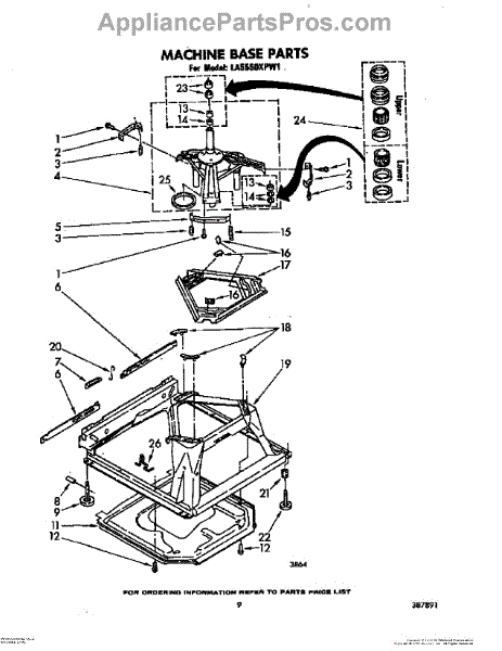 Used for direct drive washing machines. Complete assembly includes 2 level mechanism links, 1 level mechanism spring, 1 knurled pin, 2 rear feet, 1 pad plate, 1 suspension plate, 1 base pad, and 1 suspension spring retainer.