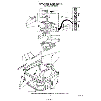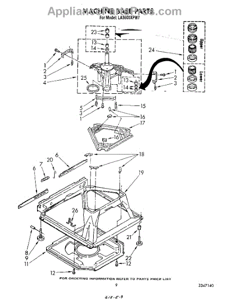 Used for direct drive washing machines. Complete assembly includes 2 level mechanism links, 1 level mechanism spring, 1 knurled pin, 2 rear feet, 1 pad plate, 1 suspension plate, 1 base pad, and 1 suspension spring retainer.