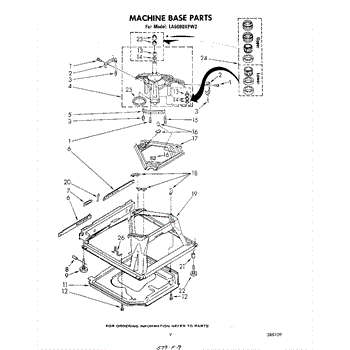 Used for direct drive washing machines. Complete assembly includes 2 level mechanism links, 1 level mechanism spring, 1 knurled pin, 2 rear feet, 1 pad plate, 1 suspension plate, 1 base pad, and 1 suspension spring retainer.