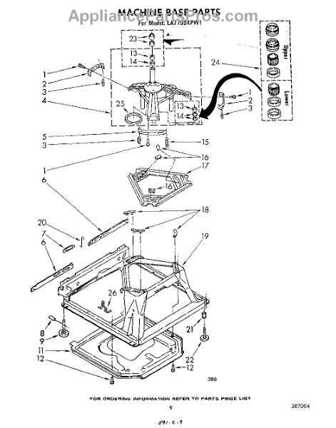 Used for direct drive washing machines. Complete assembly includes 2 level mechanism links, 1 level mechanism spring, 1 knurled pin, 2 rear feet, 1 pad plate, 1 suspension plate, 1 base pad, and 1 suspension spring retainer.