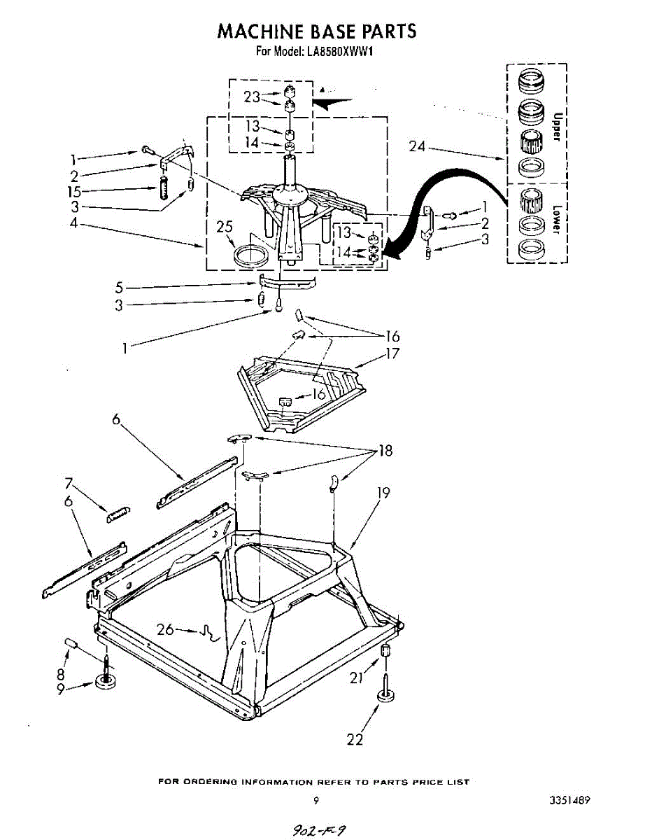 Used for direct drive washing machines. Complete assembly includes 2 level mechanism links, 1 level mechanism spring, 1 knurled pin, 2 rear feet, 1 pad plate, 1 suspension plate, 1 base pad, and 1 suspension spring retainer.