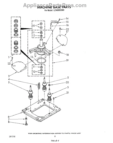 The Bearing and Seal Kit is an OEM component for Whirlpool and KitchenAid front-load washing machines. The kit includes 2 center post bearings, 3 agitator shaft seals, and 1 center post seal. These internal seals help retain lubrication inside the motor shaft housing, while the bearings allow for smooth rotation of critical components like the drive pulley. Continuous belt rubbing and water exposure diminish their lifespan over time. Symptoms of worn motor seals or bearings include: