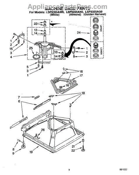 Parts for Whirlpool LSP9355AN0: 07 - Machine Base Parts