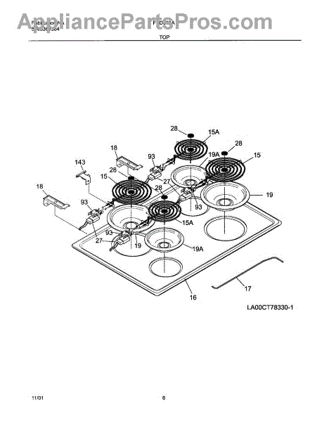 Parts for Frigidaire FED355ASB: 07 - Maintop Parts