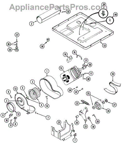 The drive motor may fail due to wear and tear over time, electrical issues, or damage to the motor's internal components. Regular use, exposure to lint and dust, and overheating can contribute to motor failure.