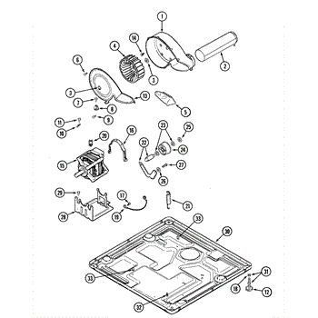 This dryer blower housing encloses the blower wheel and directs air from the drum through the lint filter to the exhaust vent. Replacing a damaged housing restores proper airflow for consistent drying and helps keep lint contained within the airflow path.