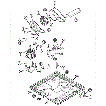 This dryer blower housing encloses the blower wheel and directs air from the drum through the lint filter to the exhaust vent. Replacing a damaged housing restores proper airflow for consistent drying and helps keep lint contained within the airflow path.