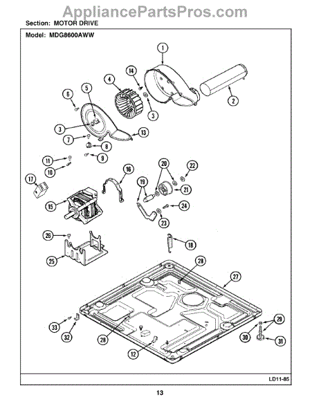 This genuine replacement part is a drive motor for dryers. The drive motor is the main engine that allows the dryer drum to rotate. If the drum is no longer spinning properly, the drive motor might need to be replaced. Luckily this is a relatively simple process.To replace the drive motor, begin by unplugging the dryer. Once it is powered off, uninstall the front panel of the dryer by removing the screws that attach it. After that, lift the top panel above the drum so that it is vertical and no longer covering the drum. Then disconnect the wires from the moisture sensors with a screwdriver by pressing down on the locking tab. Once the wires have been removed, lift the drum out from the dryer to gain access to the drive motor. Using a socket wrench, remove the blower wheel from the motor assembly. Then remove the old drive motor by unthreading the mounting screws that attach it. Install the new drive motor and reassemble the dryer. This OEM replacement part is sold individually and is compatible with Whirlpools, Maytag, Kitchenaid, Jenn-Air, Amana, Magic Chef, Admiral, Norge, Roper, and Sears/Kenmore brand dryers.