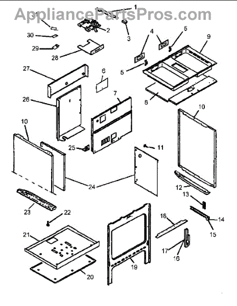 Mounting screw secures panels, brackets, and trim to the appliance frame. Replace if screw is stripped, missing, or damaged to restore secure fastening.