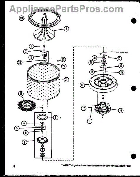 Secures the inner spin basket to the basket hub in your washer. Replace if screw is stripped, missing, or damaged during basket removal or repair.