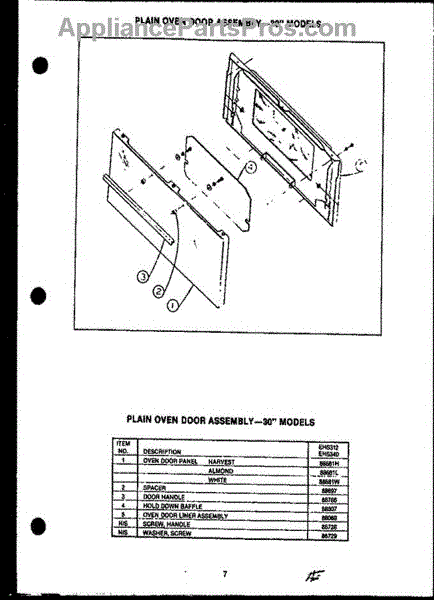 Parts for Amana EHS312: 07 - Plain Oven Door Assy-30`` Models Parts