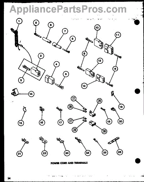 Parts for Amana LE2500 / P7762203W: 07 - Power Cord And Terminals Parts