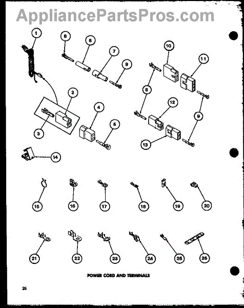 Parts for Amana TEA600 / P7704103W: 07 - Power Cord And Terminals Parts