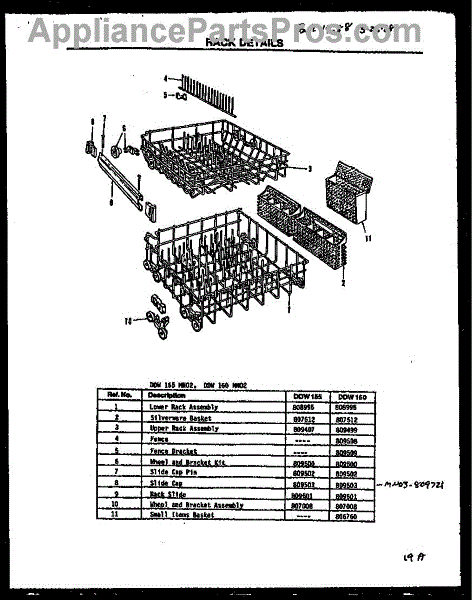 Parts for Amana DDW160/MN02: 07 - Rack Details Parts