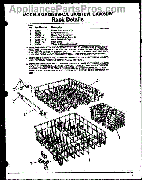 Parts for Amana GAX97DW / MN02: 07 - Rack Details Parts