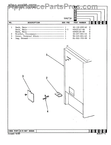 Parts for Admiral 550WH: 07 - Rear View Parts