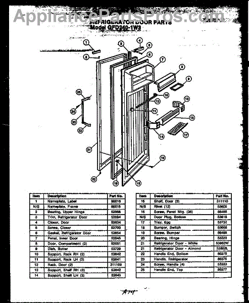 Parts for Amana GFD240-1L3 / GFD24001L 3: 07 - Ref Door Parts