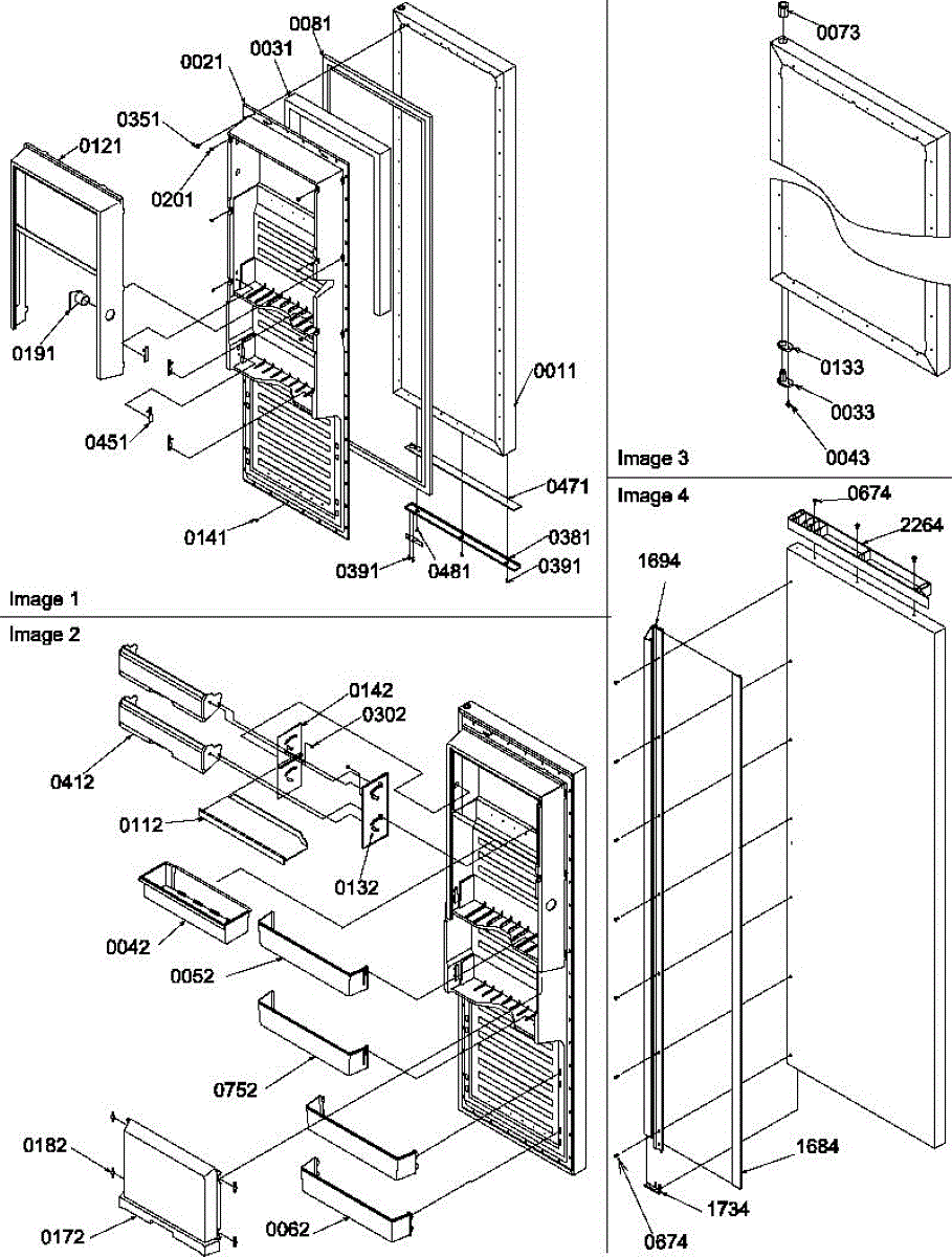 Cam kit for refrigerator door hinges. Includes black and white cams that install at door bottom and hinge. Replace when cracked, broken, or worn.