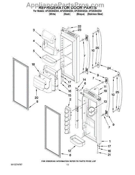 The Door Gasket is an OEM replacement part for Whirlpool side-by-side refrigerators. This black gasket provides a critical moisture and air seal around the refrigerator and freezer door openings. Causes of failure may involve cracking or degradation from mechanical stresses or chemical exposure over years of use. Temperature fluctuations can also damage sealing integrity. Symptoms of a defective door gasket include: