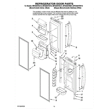 The Door Gasket is an OEM replacement part for Whirlpool side-by-side refrigerators. This black gasket provides a critical moisture and air seal around the refrigerator and freezer door openings. Causes of failure may involve cracking or degradation from mechanical stresses or chemical exposure over years of use. Temperature fluctuations can also damage sealing integrity. Symptoms of a defective door gasket include: