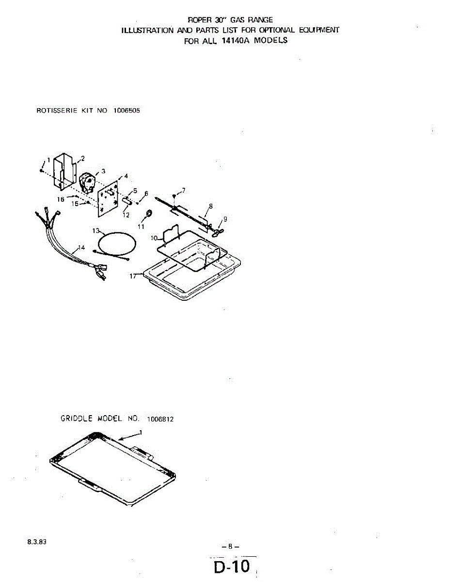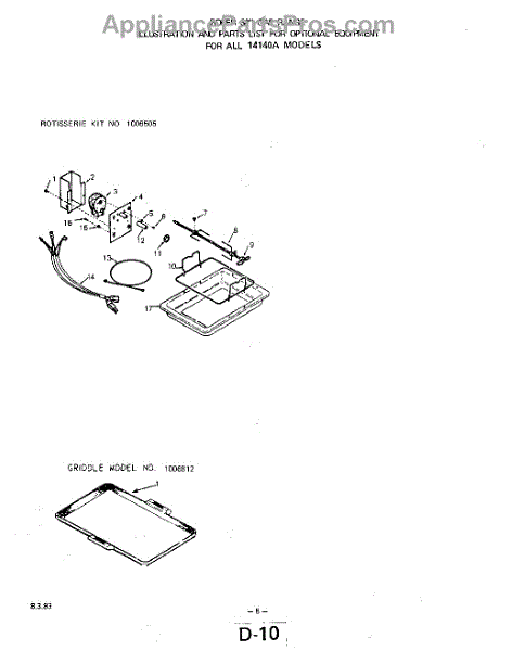 Parts for Whirlpool 1414W0A: 07 - Rotisserie Kit, Griddle Parts