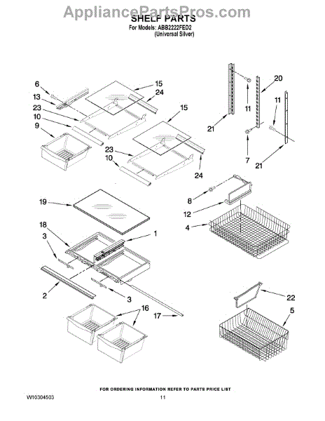 Note: For the right side drawer glide, use part number WP67001053
