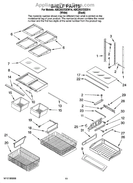 Note: For the left-hand side Pantry Drawer Support, order part number WP12656105.