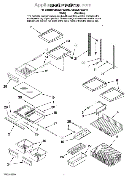 Note: For the right side drawer glide, use part number WP67001053